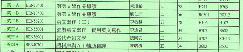 教室異動通知 10/14 (二) 暫時異動通知 英三A 英文寫作(三) A組 教室暫至 H109 英三A 浪漫時期起英國文學 A組 教室暫至 H101 英四A 商用英文閱讀 教室改至 B0305 英四A 實用中英翻譯 教室改至 B717 英一A 英美文學作品導讀 教室改至 B709 英一B 英美文學作品導讀 教室改至 R0312 英二B 英文寫作(二)C組 教室改至 H107 英三A 進階英文寫作一實用英文寫作 教室改至 B602 英三A 當代奇幻文學 教室改至 R0413 英四A 語料庫與AI輔助翻譯 教室改至 B602