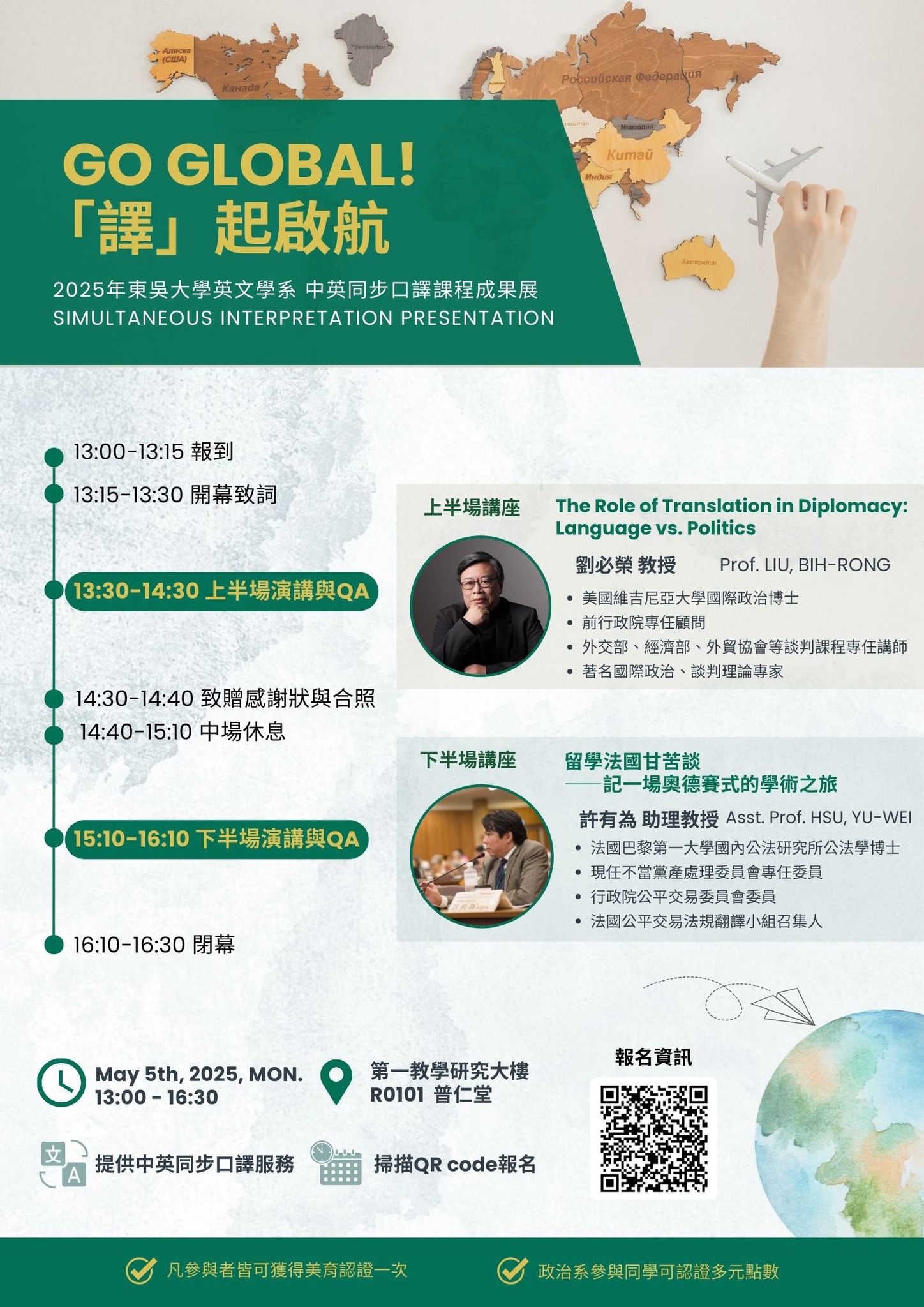 無論你是語言學習者、對翻譯有興趣的同學,或是未來有志於國際事務、外交工作者,這場活動都將為你提供寶貴的啟發與實務觀察。